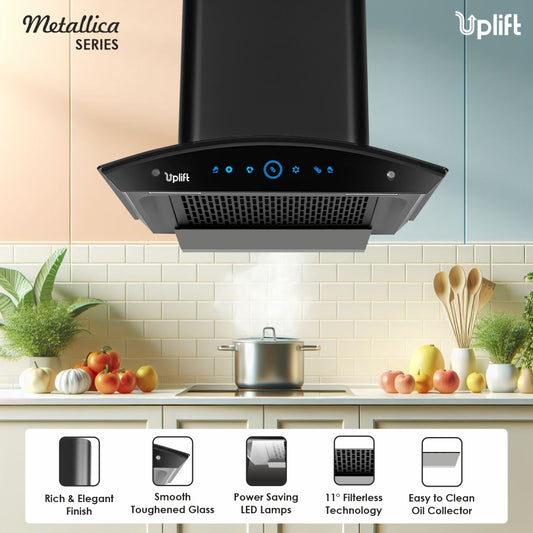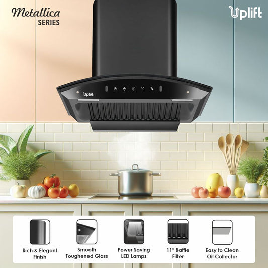 Titania 60 Baffle Filter Smart Autoclean Kitchen Chimney (Wall Mount, Curved Glass, 1350 m3/hr, Motion Sensor + Touch Control, Black, 60 cm)